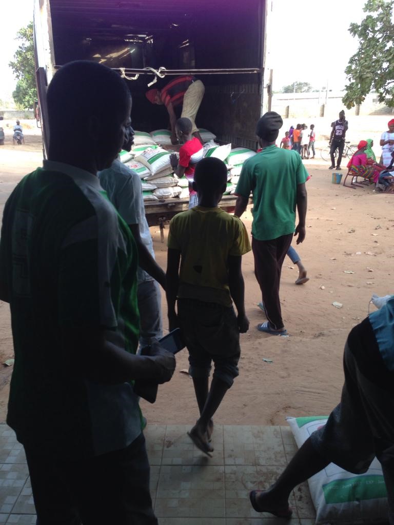 Ook The Gambia verkeerd nog steeds in totale ‘lockdown’ en zodoende moest er een manier bedacht worden om zorgvuldig de zakken rijst te verdelen. Afgelopen dinsdag was het ‘pick-up’ dag. De families van maar liefst 300 kinderen kwamen naar school om allen een zak rijst op te halen.