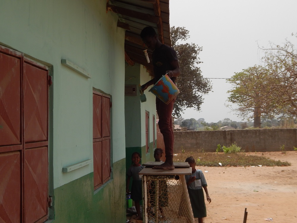 Vervolgens zijn we deze week nog 2 keer op school geweest, en hebben Mark en Jacco geholpen bij het schilderen op school. Verder hebben we veel schoonmaak middelen gekocht want schriften en pennen zijn er even voldoende. Ook hebben we lekkere zoete sapjes voor de kinderen meegenomen. Als afsluiter namen we de leraren met stagiaires mee uit en aten we Chicken and Chips.