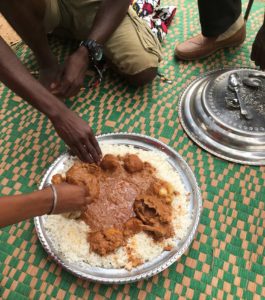 Wij waren totaal niet van plan om al te veel te gaan doen, maar dat liep anders. Op vrijdag 14 juni kwamen wij aan en (Schoolhoofd) Yusupha en (leraar) Sainey stonden al klaar samen met onze taxichauffeur Yusupha. Na een warme omhelzing brachten zij ons naar het hotel. Het was voor hun ook Eid Mubarak, de feestavond na de Ramadan en dat wordt het weekend lang gevierd. Al snel werden wij uitgenodigd om zaterdag met hun mee te vieren. Dus zaterdag op pad voor Afrikaanse traditionele kleding, want ook al hadden we er aan gedacht, onze Afrikaanse shirts lagen nog in de kast in Gorinchem (Niet zo slim dus!). Eenmaal onze Afrikaanse traditionele kleding gekocht gingen we naar het gezin van Yus (schoolhoofd).